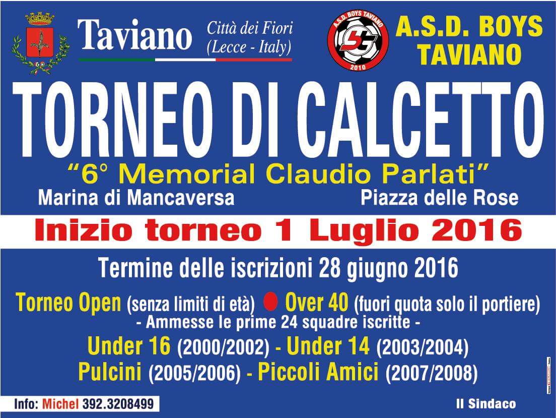 Il Torneo di calcetto  2016 "VI Memorial Claudio Parlati" inizia venerdì 01 luglio.Per le iscrizioni c'è tempo fino a martedì 28 giugno.info: Michel 392.3208499Visualizza e/o scarica il relativo manifesto informativo